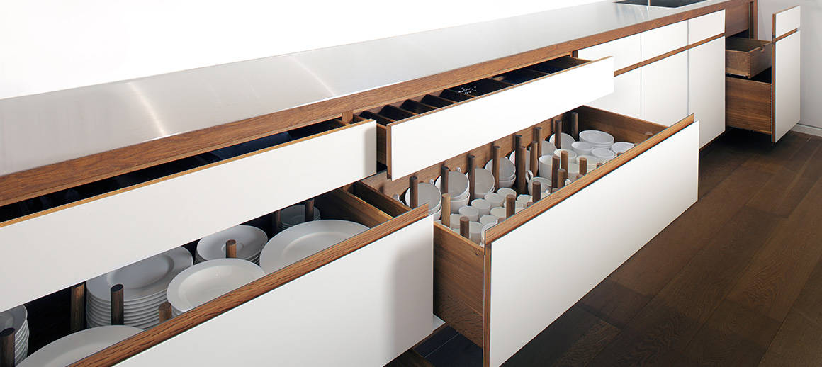 Tiroirs à épices, tiroirs à ustensiles, porte-serviettes, Unikat vous offre toutes les solutions de rangement et les options d’organisation. Des lignes discrètes et épurées, des agencements de cuisine parfaits et une organisation qui facilitent votre travail et créent de l’ordre.