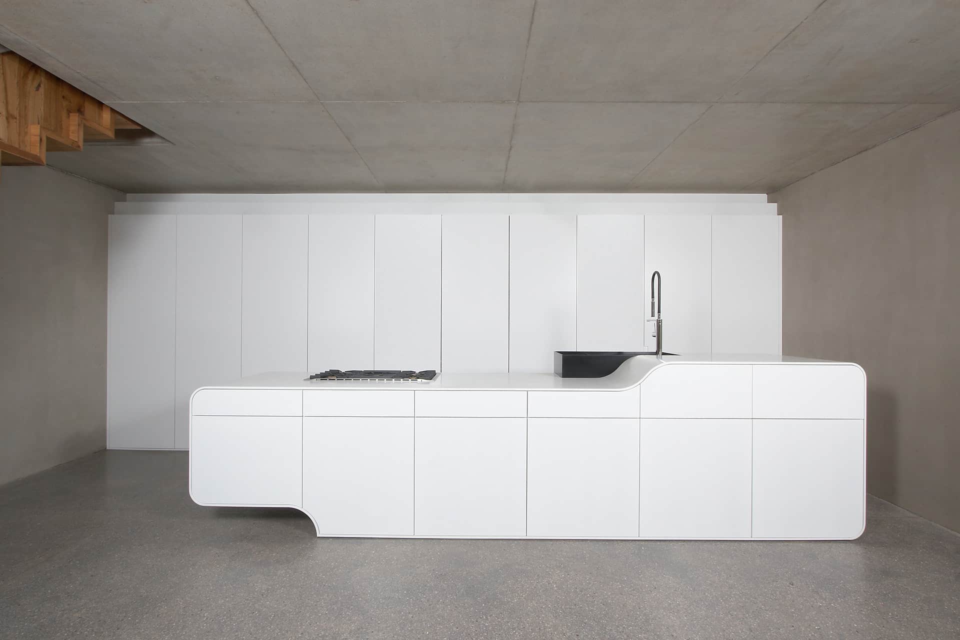 Unikat développe un ensemble harmonieux de l’eclairage à l’équipment, en passant par le plan de travail et les armoires.