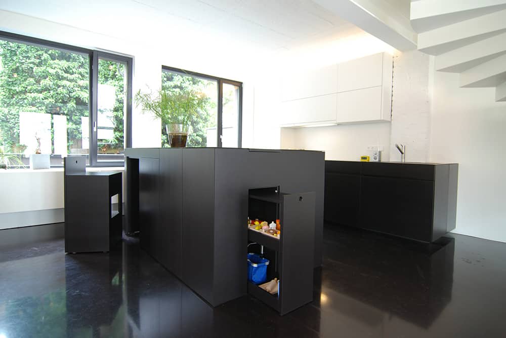 Agitation et désordre seront évités dans l’objet. Un plan de travail qui remplit les fonctions d’une table à manger, de grands placards pour ranger tous les ustensiles et des appareils de cuisine qui remplissent toutes les fonctions.