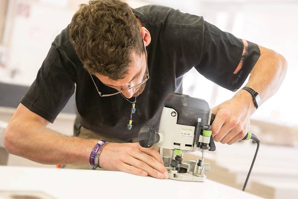 Après l’élaboration de plans de travail détaillés, nous fabriquons dans nos ateliers tous les meubles et nous les combinons avec différents matériaux tels que le bois, le verre, l‘inox, le marbre, le granit et tout autre type de pierre naturelle.